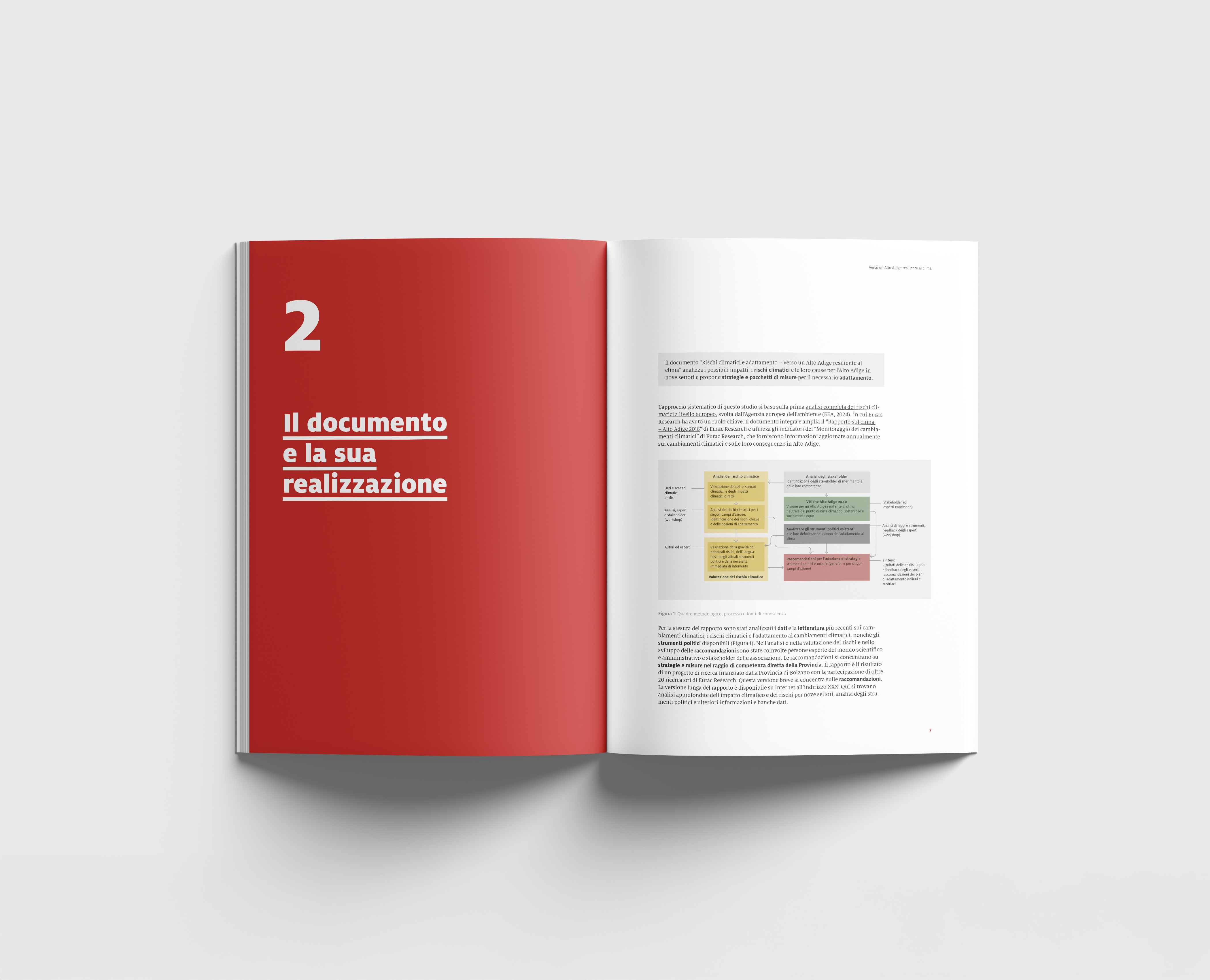 Il rapporto “Rischi climatici e adattamento - Percorsi per un Alto Adige resiliente al clima” analizza gli impatti e i rischi climatici in nove settori e offre strategie e raccomandazioni per l’adattamento. Si basa sul Rapporto sul clima 2018, che ha analizzato per la prima volta gli impatti climatici per l’Alto Adige, e prosegue con gli indicatori di monitoraggio climatico aggiornati annualmente.